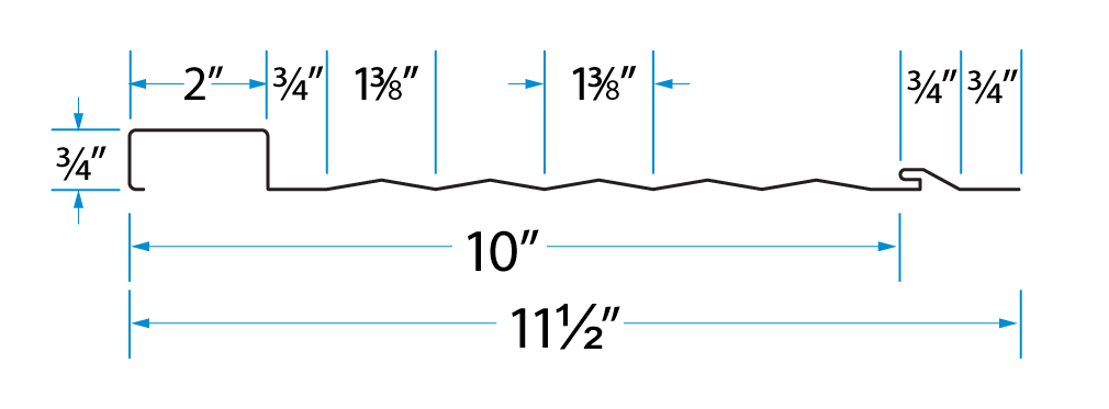 The solid colors are 29 gauge and the wood grain & rock patterns are 28 gauge. The panel covers 10" wide and is cut to the length at the customer’s request.
